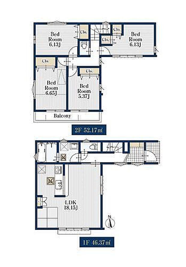 LDKには対面式キッチンを採用。全居室収納付の2階建て新築分譲住宅です。