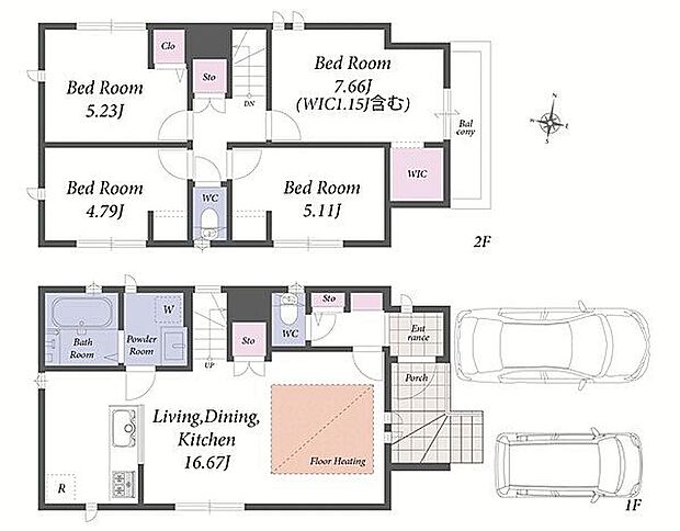 並列駐車2台可能。食洗機・浴室乾燥機等の設備が充実した新築住宅です。