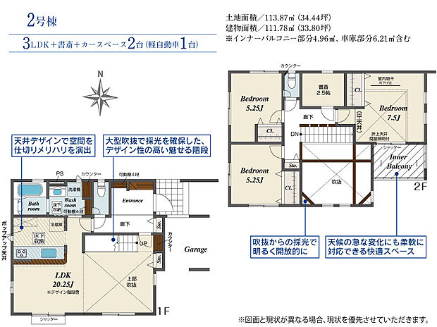 土地面積 113.83m2(約34.43坪)~113.87m2(約34.44坪)