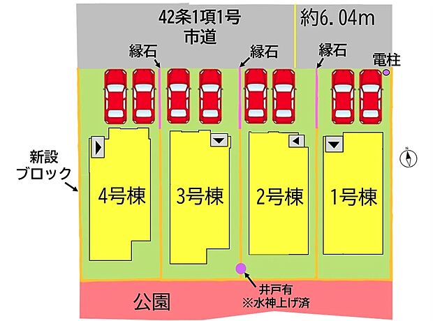 ■駐車並列2台可、前面道路幅員広々6mで駐車楽々! ■バス停徒歩4分・小学校徒歩11分・中学校徒歩9分の子育てに優しい閑静な住宅街! ■物件裏に公園がありお子様がのびのび遊べる環境です!