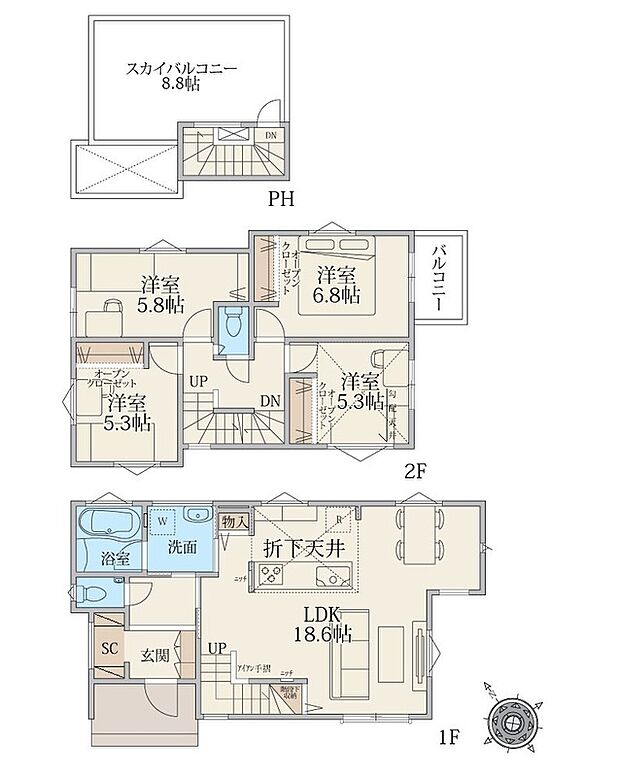 天空の家~INVITARE~安全・快適を標準装備した分譲地!ワンランク上の暮らし天空の家!高断熱・高効率のZEH水準住宅!ファミリーに嬉しい4部屋の間取り。収納完備で室内スッキリ! 北欧系ノルディックスタイル!シンプルで清潔感に溢れたデザイン。自慢のスカイバルコニーから眺める景色は1日の疲れを癒してくれます。BBQや家庭菜園の他に最近では「お家サウナ」を楽しむ方も。 駅まで徒歩8分で生活利便性が高く、大型商業施設も近い嬉しい住環境も魅力的!小学校まで徒歩約5分!ぜひモデルハウスをご見学ください。
