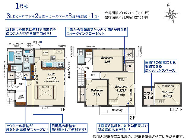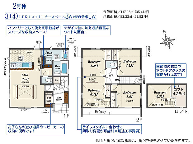| 土地面積 | 115.74m2(約35.01坪)~117.08m2(約35.41坪) | ||