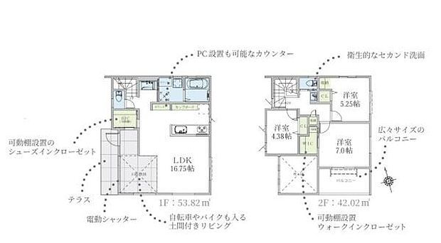 | 間取り | 3LDK 間取り内訳:リビングダイニングキッチン 16.7帖(1階)・洋室 5.2帖(2階)・洋室 7帖(2階)・洋室 4.3帖(2階) |
