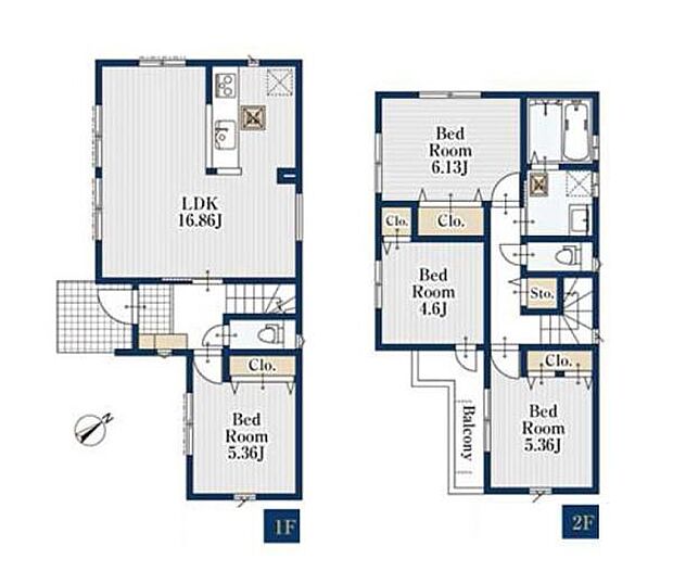 | 間取り | 4LDK 間取り内訳:リビングダイニングキッチン 16.8帖(1階)・洋室 5.3帖(1階)・洋室 6.1帖(2階)・洋室 4.6帖(2階)・洋室 5.3帖(2階) |