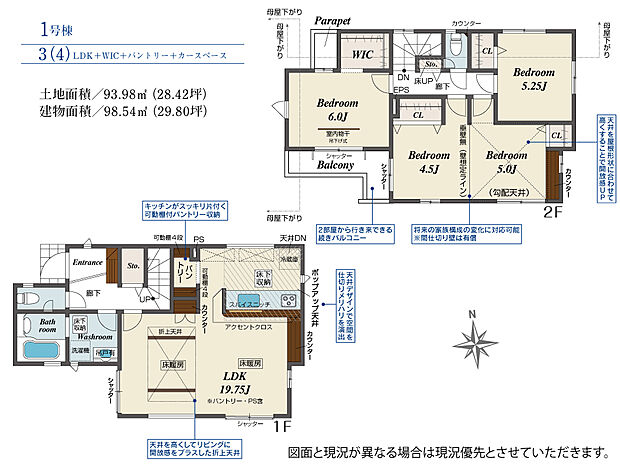 - 「建築条件付き土地」の「建物プラン例」は、土地購入者の設計プランの一例であり、プランの採用可否は任意です。