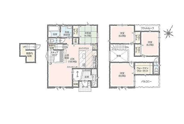 SIC・WIC・基礎内収納など豊富な収納で荷物が増えがちな子育て家族を応援 リビングで遊ぶお子さんを見守りながらテレワークもできる「スキップフロア」 家族と会話しながらお料理ができるペニンシュラタイプの対面式キッチン・食器洗い乾燥機などうれしい設備が充実!