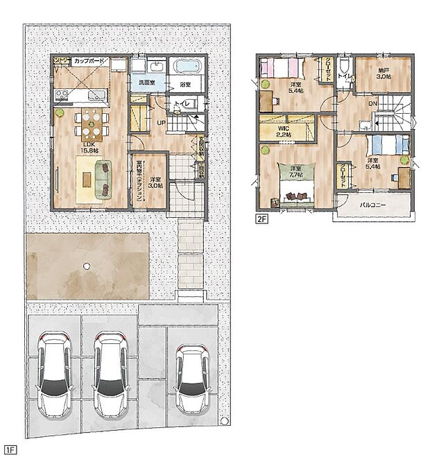 イオン袋井店まで車約2分!買い物便利な環境です。/2階に3.0帖の納戸を設けたすまい。 【充実の設備・くらしをここちよく工夫を凝らしています】カップボード/食洗機/LDK照明/室内物干/浴室乾燥・暖房/大型収納/土間収納/スマートキー/2階洗面 【住みやすく長持ちする家】構造計算実施/耐震等級3取得/ZEH基準断熱/最長30年保証/長期優良住宅認定