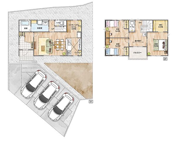 • 「建築条件付き土地」の「建物プラン例」は、土地購入者の設計プランの一例であり、プランの採用可否は任意です。