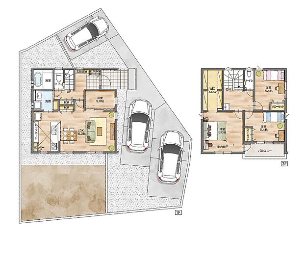 • 「建築条件付き土地」の「建物プラン例」は、土地購入者の設計プランの一例であり、プランの採用可否は任意です。