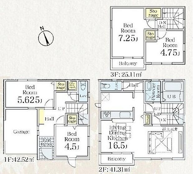 | 間取り | 3LDK+S(納戸)・4LDK | 建物階 | 木造在来軸組工法3階建(900モジュール) |