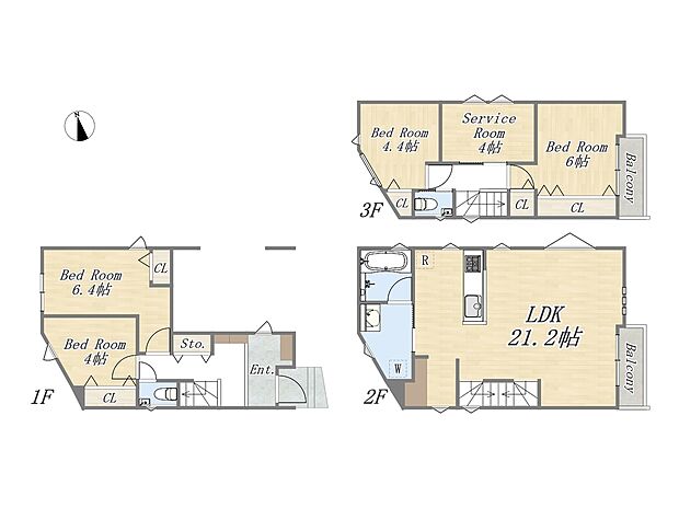 | 間取り | 3SLDK~4SLDK+ビルトインガレージ | 建物階 | 木造3階建 |