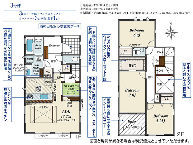 112.00m2(約33.87坪)~120.37m2(約36.41坪) |