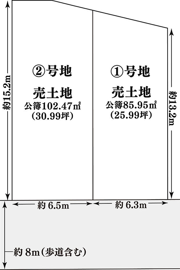 | 土地面積 | 85.95m2~102.47m2 | ||