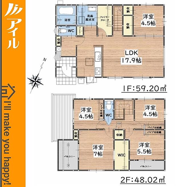 | 建物面積 | 107.22m2~109.48m2 | ||