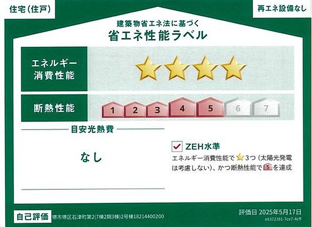- 星マークの数が多いほどエネルギー消費性能が高いことを示しています。再エネ設備のない住宅は★0~★4の5段階評価、再エネ設備がある住宅は★0~★6の7段階評価となります。