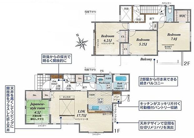 ■駐車スペース並列3台分■吹抜け■パントリー■対面式キッチン■主寝室にウォークインクローゼット■2部屋続きのバルコニー