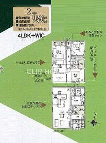 | 間取り | 4LDK 間取り内訳:リビングダイニングキッチン 17.7帖(1階)・洋室(2階)・洋室(2階)・洋室(2階)・洋室(2階) |