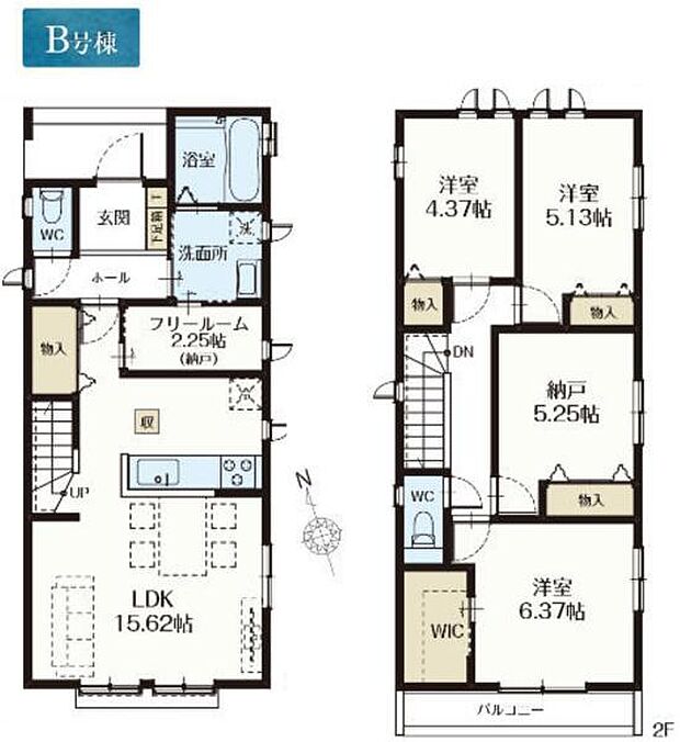 | 間取り | 3LDK 間取り内訳:リビングダイニングキッチン 15.6帖(1階)・洋室 6.3帖(2階)・洋室 5.1帖(2階)・洋室 4.3帖(2階) |