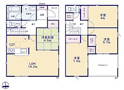 間取り内訳:洋室 8帖・洋室 6帖・洋室 6帖・和室 4.5畳・リビングダイニングキッチン 16帖