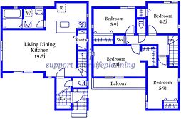 | 間取り | 4LDK 間取り内訳:リビングダイニングキッチン 17帖(1階)・洋室 6.5帖(2階)・洋室 5.2帖(2階)・洋室 4.6帖(2階)・洋室 4.5帖(2階)・収納 2帖(2階) |