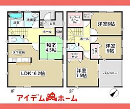 | 間取り | 4LDK 間取り内訳:リビングダイニングキッチン 16.2帖・和室 4.5畳・洋室 7.5帖(2階)・洋室 6帖(2階)・洋室 5帖(2階)・その他 2帖(2階) |