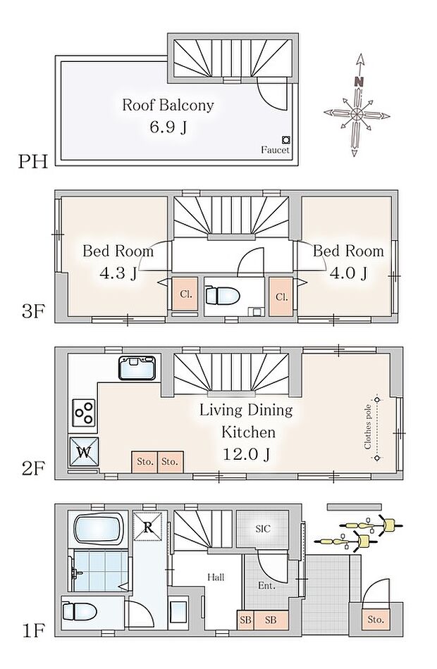 | 間取り | 2LDK | 建物階 | 木造3階建て |
