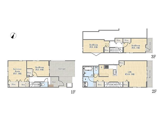 | 間取り | 3SLDK+ビルトインガレージ | 建物階 | 木造3階建 |