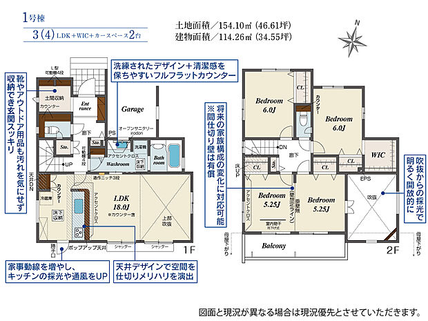 | 建物面積 | 108.42m2(約32.79坪)~114.26m2(約34.56坪) | ||
