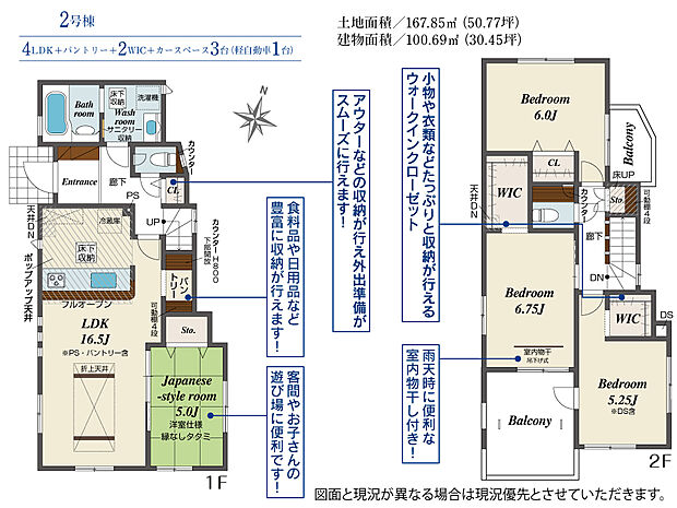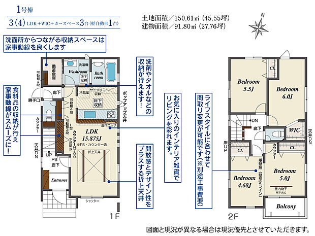 | 建物面積 | 91.80m2(約27.76坪)~100.69m2(約30.45坪) | ||