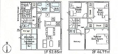 | 間取り | 4LDK 間取り内訳:リビングダイニングキッチン 15.2帖(1階)・和室 5畳(1階)・洋室 9帖(2階)・洋室 6.5帖(2階)・洋室 5.2帖(2階) |