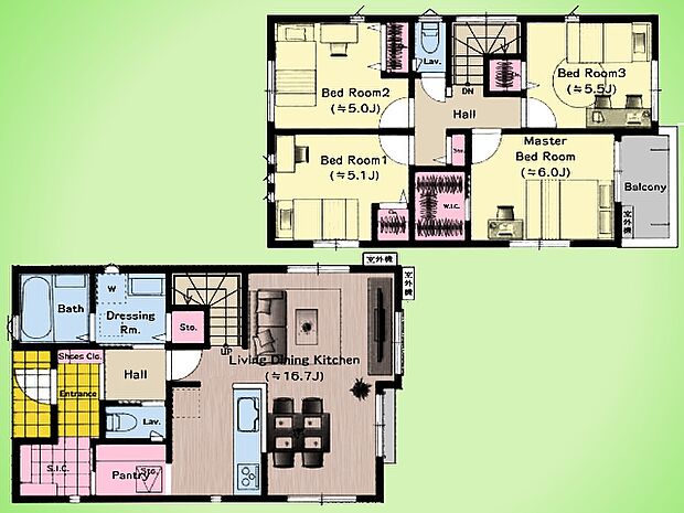 駐車スペースあり(車種による) 複数路線利用可能で通勤・通学に便利な立地 キッチンパントリー 主寝室にはウォークインクローゼット付き 小学校が徒歩10分圏内にあり