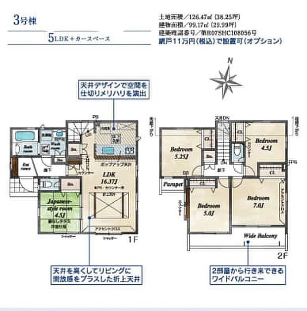 | 間取り | 5LDK 間取り内訳:洋室 16.3帖(1階)・和室 4.5畳(1階)・洋室 4.5帖(2階)・洋室 5.2帖(2階)・洋室 7帖(2階)・洋室 5帖(2階) |