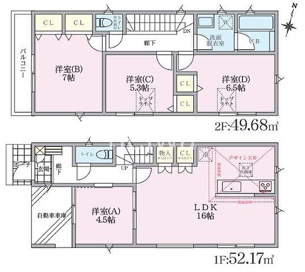 | 間取り | 4LDK 間取り内訳:洋室 4.5帖・リビングダイニングキッチン 16帖・洋室 7帖・洋室 5.3帖・洋室 6.5帖 |