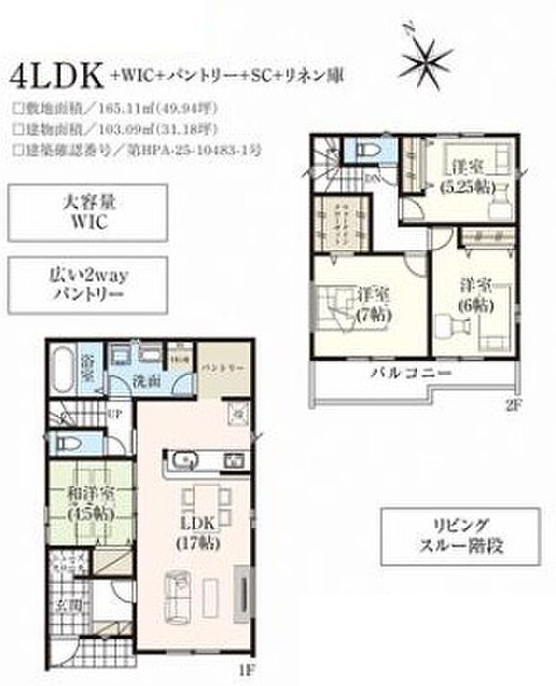 | 間取り | 4LDK 間取り内訳:リビングダイニングキッチン 17帖(1階)・和室 4.5畳(1階)・洋室 7帖(2階)・洋室 6帖(2階)・洋室 5.3帖(2階) |