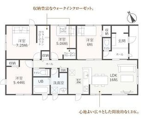| 間取り | 4LDK 間取り内訳:リビングダイニングキッチン 16帖(1階)・洋室 7.2帖(1階)・洋室 6帖(1階)・洋室 5.4帖(1階)・洋室 5帖(1階) |