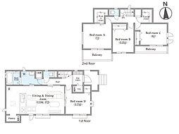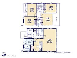 | 間取り | 4LDK 間取り内訳:リビングダイニングキッチン 20帖(1階)・洋室 7帖(2階)・洋室 5.2帖(2階)・洋室 5.2帖(2階)・洋室 6帖(2階) |