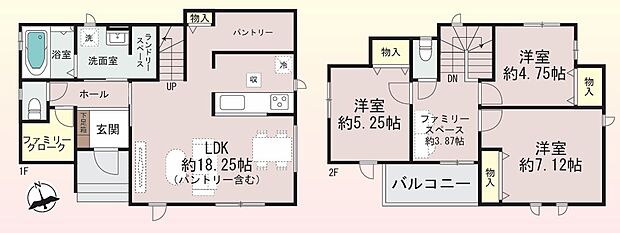 | 間取り | 3LDK 間取り内訳:リビングダイニングキッチン 18.2帖(1階)・洋室 4.7帖(2階)・洋室 5.2帖(2階)・洋室 7.1帖(2階) |