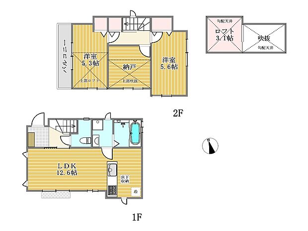 • 【【ロフト】】夏冬の季節の冷暖房用具や、めったに使わない家財道具などをたくさん収納して広々としたスペースを。
