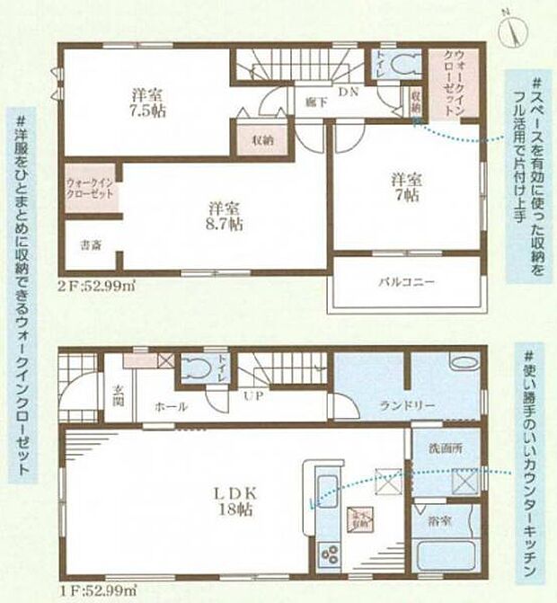 • 「建築条件付き土地」の「建物プラン例」は、土地購入者の設計プランの一例であり、プランの採用可否は任意です。