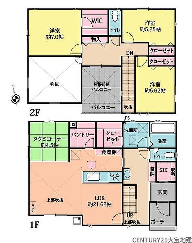 | 間取り | 3LDK 間取り内訳:洋室 5.6帖(2階)・洋室 5.2帖(2階)・リビングダイニングキッチン 21.6帖(1階)・洋室 7帖(2階) |