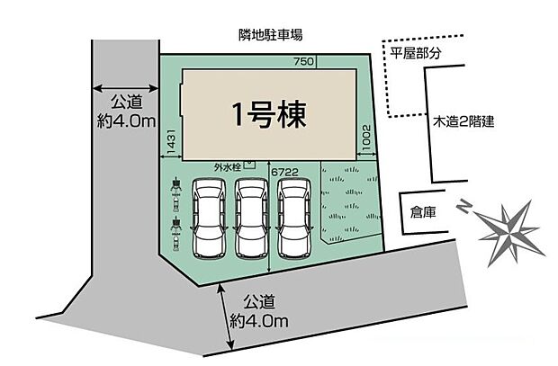 • 北西 (公道 幅員 4.00m 接面 -)