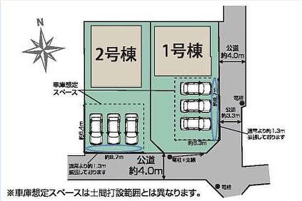 • 「建築条件付き土地」の「建物プラン例」は、土地購入者の設計プランの一例であり、プランの採用可否は任意です。