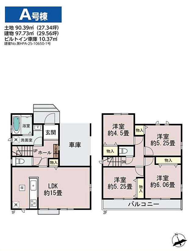 | 間取り | 4LDK 間取り内訳:リビングダイニングキッチン 15帖・洋室 6帖・洋室 5.2帖・洋室 5.2帖・洋室 4.5帖 |