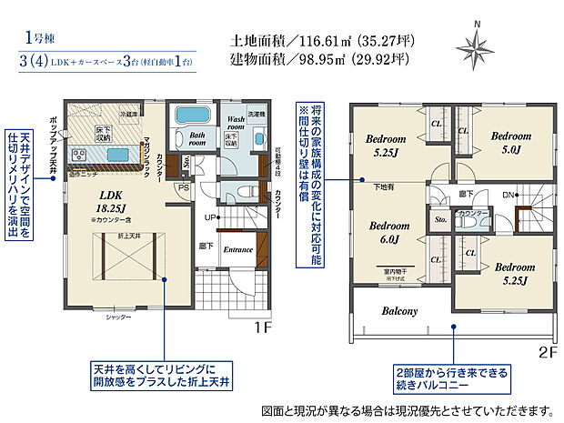 98.95m2(約29.93坪)~104.74m2(約31.68坪) |