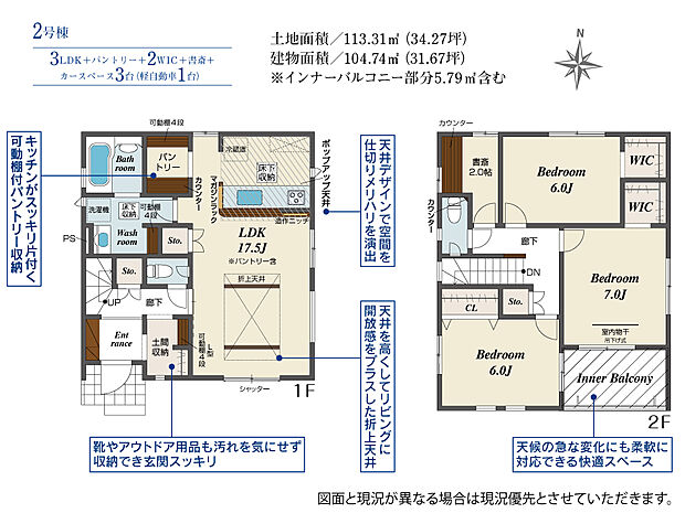 113.31m2(約34.27坪)~116.61m2(約35.27坪) |