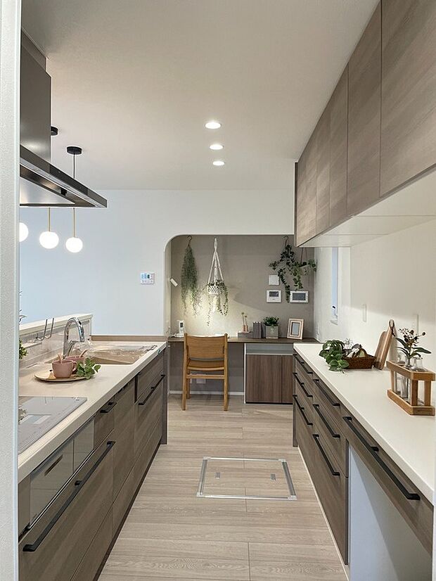 • 【SHP下吾川4号地内観写真:2024年6月3日撮影】手元が1段上がったカウンタータイプのキッチン。