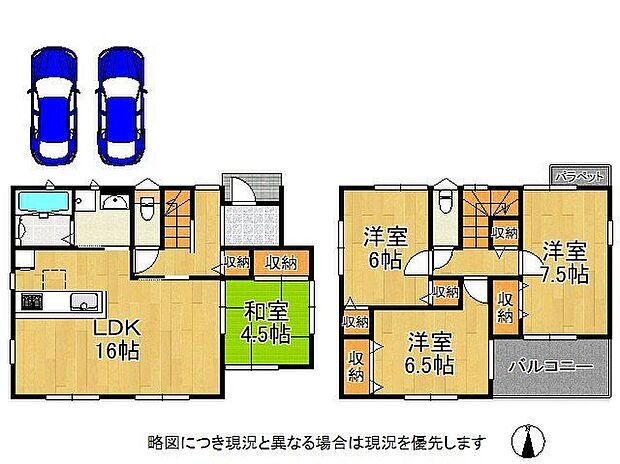 | 間取り | 4LDKLDK16帖 WIC 駐車2台 和室 2面バルコニー インナーバルコニー 床下収納 2面採光 全居室収納スペース 廊下収納 全洋室6帖以上 |