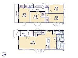 間取り内訳:洋室 4.8帖(2階)・洋室 5帖(2階)・洋室 6帖(2階)・洋室 6帖(2階)・リビングダイニングキッチン 18帖(1階)