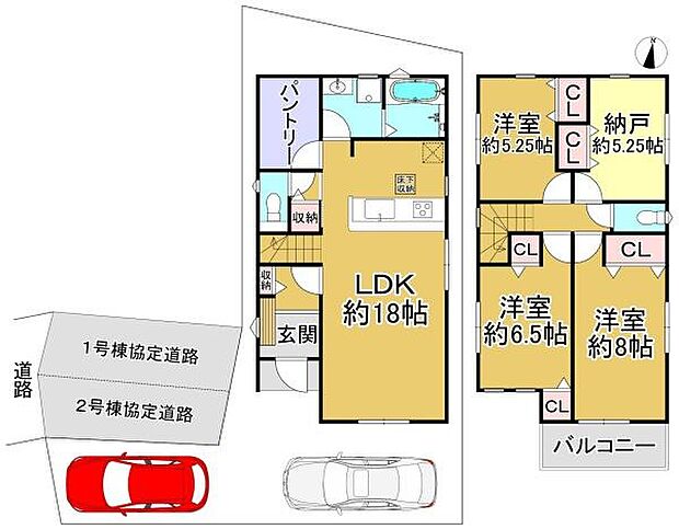 ■4区画分譲地の2号棟 3SLDK+駐車2台可■パントリーがあり、まとめ買いした食品の保管に便利です