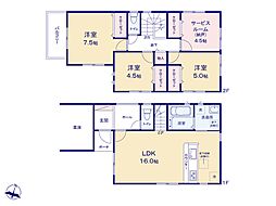 | 間取り | 3LDK(+1S) 間取り内訳:リビングダイニングキッチン 16帖・洋室 7.5帖・洋室 5帖・洋室 4.5帖・収納 4.5帖 |